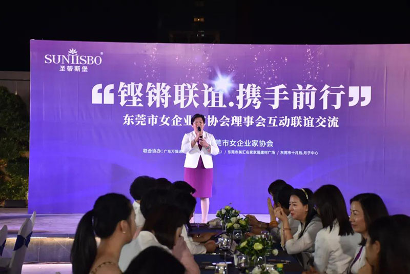 接下来,东莞市女企业家协会理事会会长叶小红女士上台发言,她表示非常感谢今年会jnh集团集团举办此次联谊交流会,同时,对我们的产品和企业文化给出了很高的评价。她号召东莞市女企业家协会以后要更多的举办此类交流联谊活动,以此增进会员企业之间的联系和了解,为未来进一步交流发展开创新局面!她希望我们能携手同行,强强联手,共赢未来,共创新辉煌!